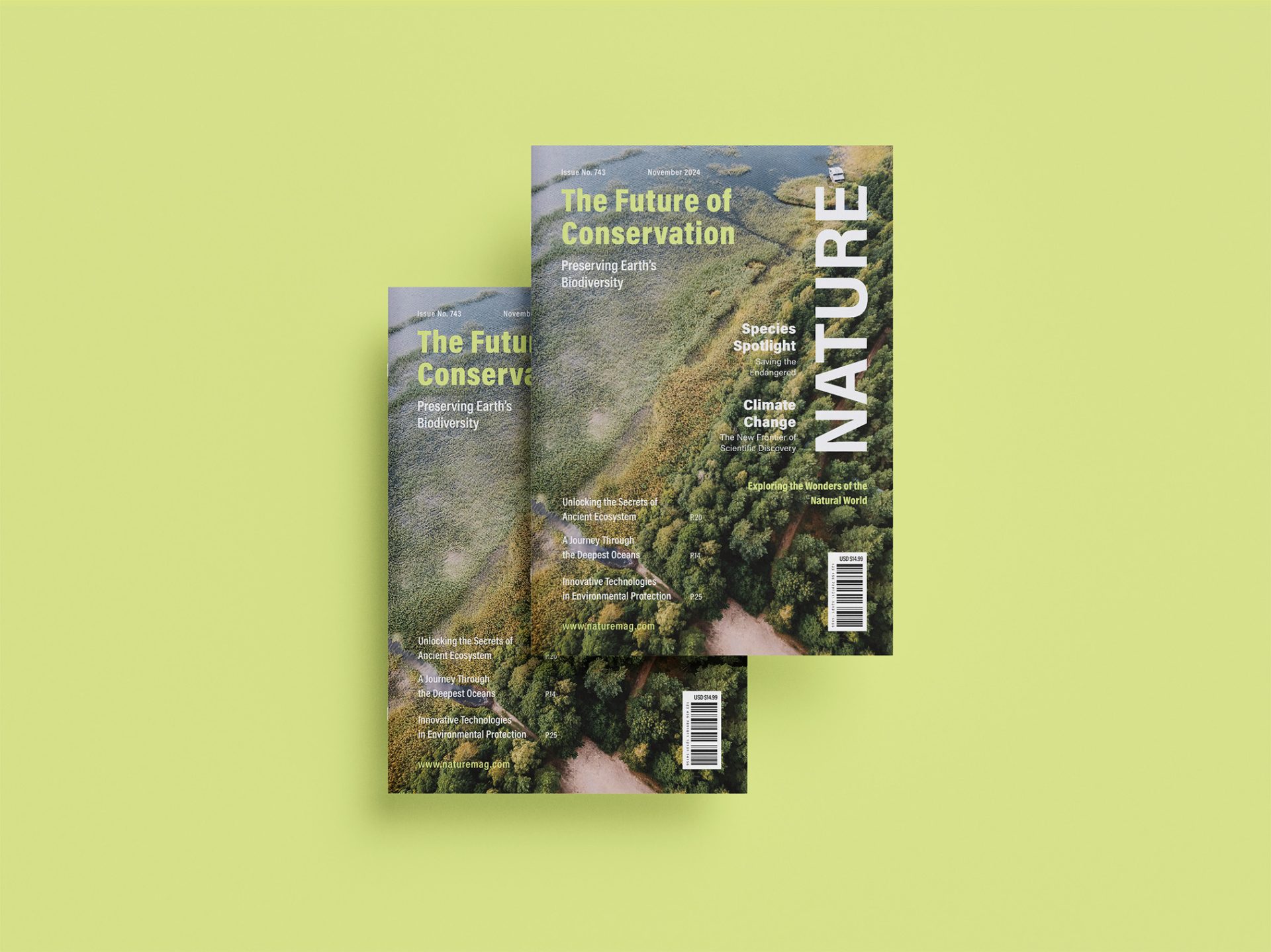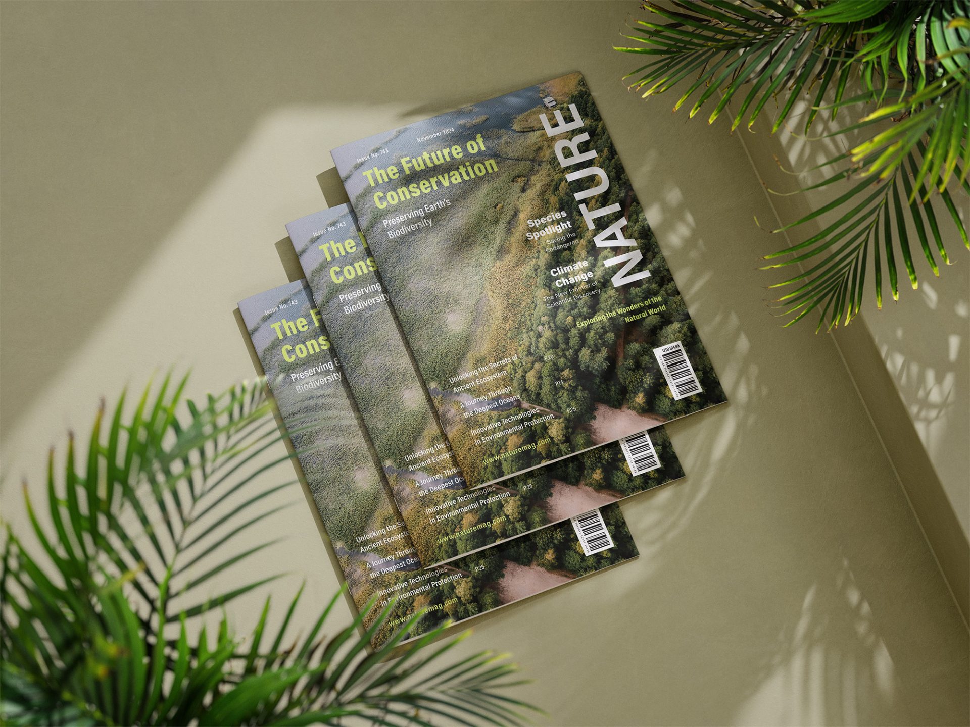 The cover design for NATURE is a tribute to the beauty and fragility of Earth’s biodiversity, blending visual storytelling with a clean, modern layout to inspire readers about conservation.