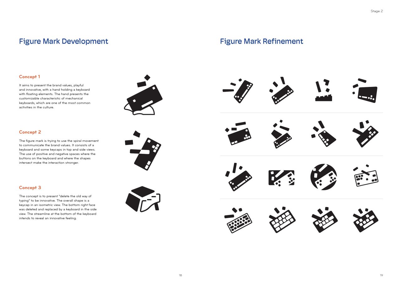 設計中從上視圖結合鍵盤和漂浮的鍵帽,呈現出機械鍵盤的趣味性和可自定義的特色。簡化過的鍵盤形狀,則讓 Logo 和產業連結更直接,也更有獨特性和耐看度。